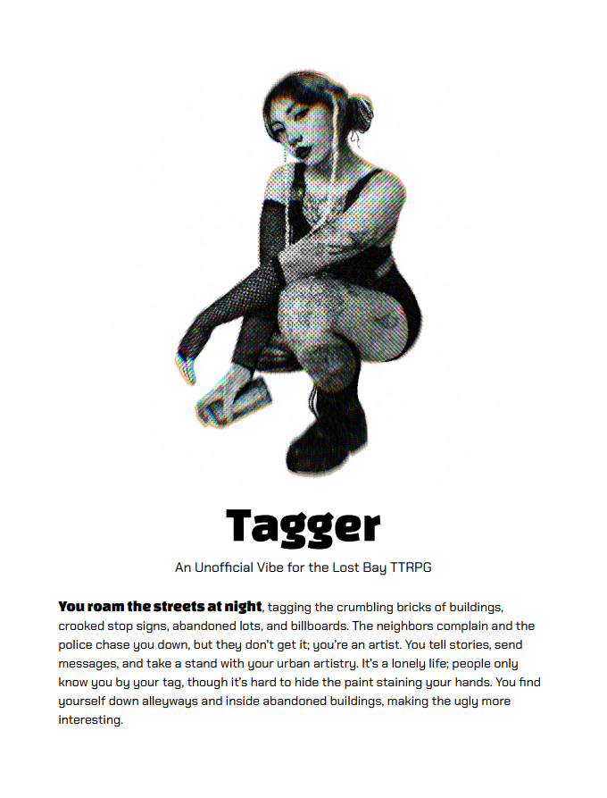 This is a custom, unofficial Vibe for the tabletop RPG game The Lost Bay based on my love for street artists.